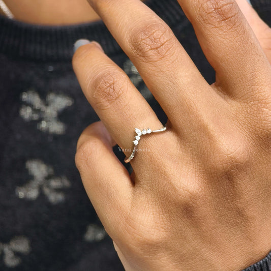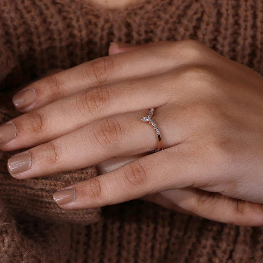 V Shaped Chevron Band, Round Lab Grown Diamond Wedding Band
