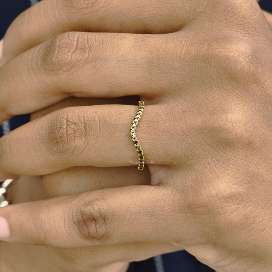 0.27 CT Round Cut Black Moissanite Curved Eternity Wedding Band