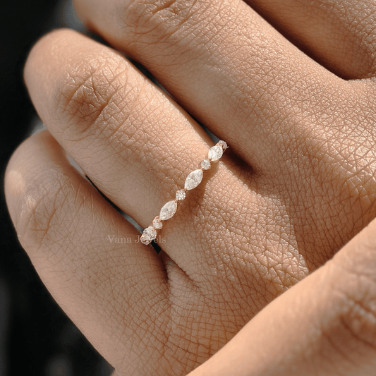 0.37 TCW Marquise & Round Cut Moissanite Alternating Wedding Band