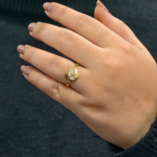 Pear Cut Moissanite Solitaire Engagement Ring with Half Bezel Set Bypass Shank