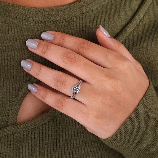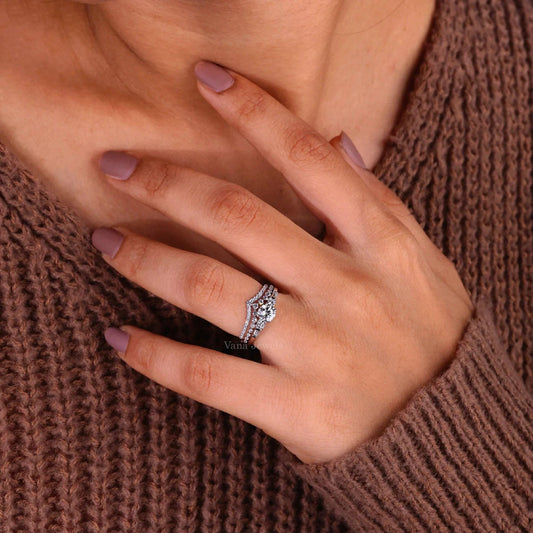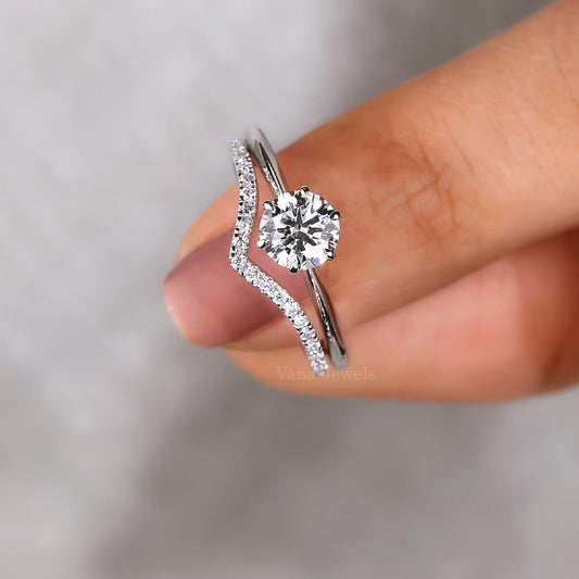Round Cut Lab Grown Diamond Engagement Ring with V-Shaped Wedding Band