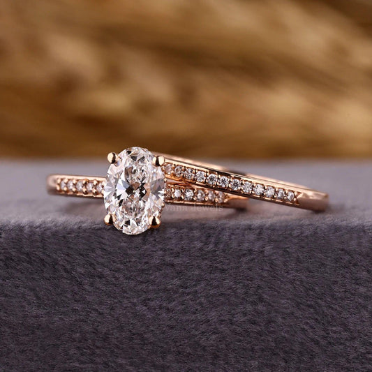 Oval Lab Diamond Antique Wedding Ring Set for women.