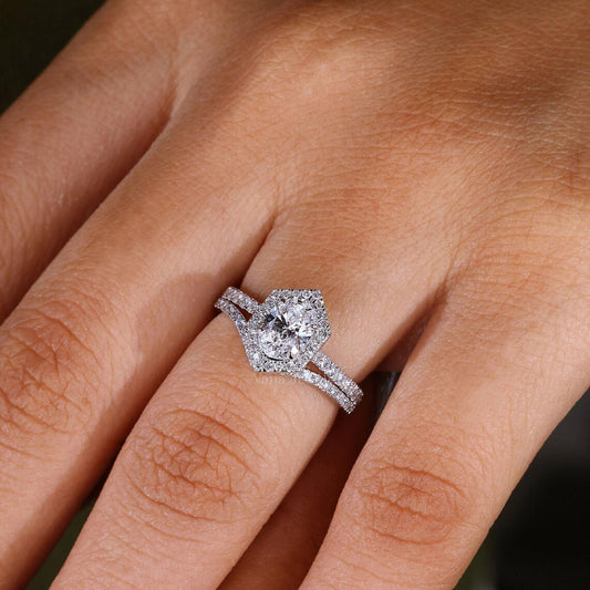 Oval Cut Lab Grown Diamond Bridal Set, Engagement Ring & Wedding Band
