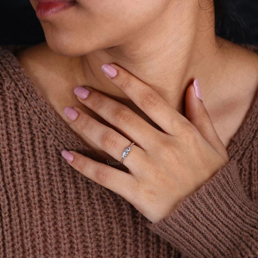 Round Cut Lab Grown Diamond Three Stone Minimalist Engagement Ring
