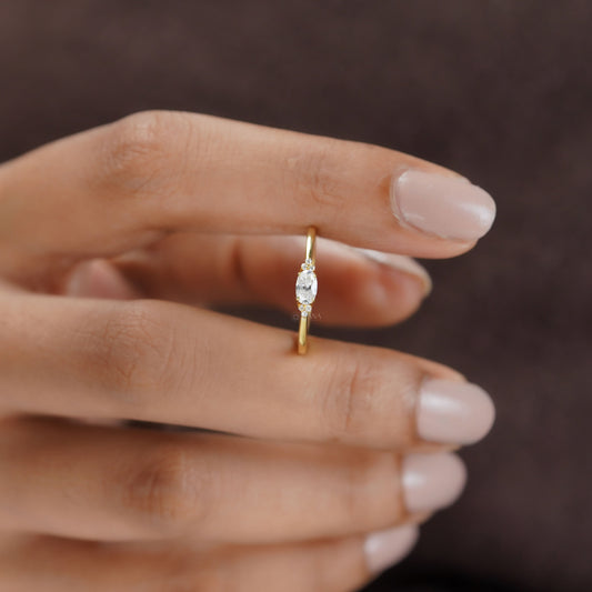 0.26 CT Oval and Round Cut Moissanite Wedding Band with East to West Style