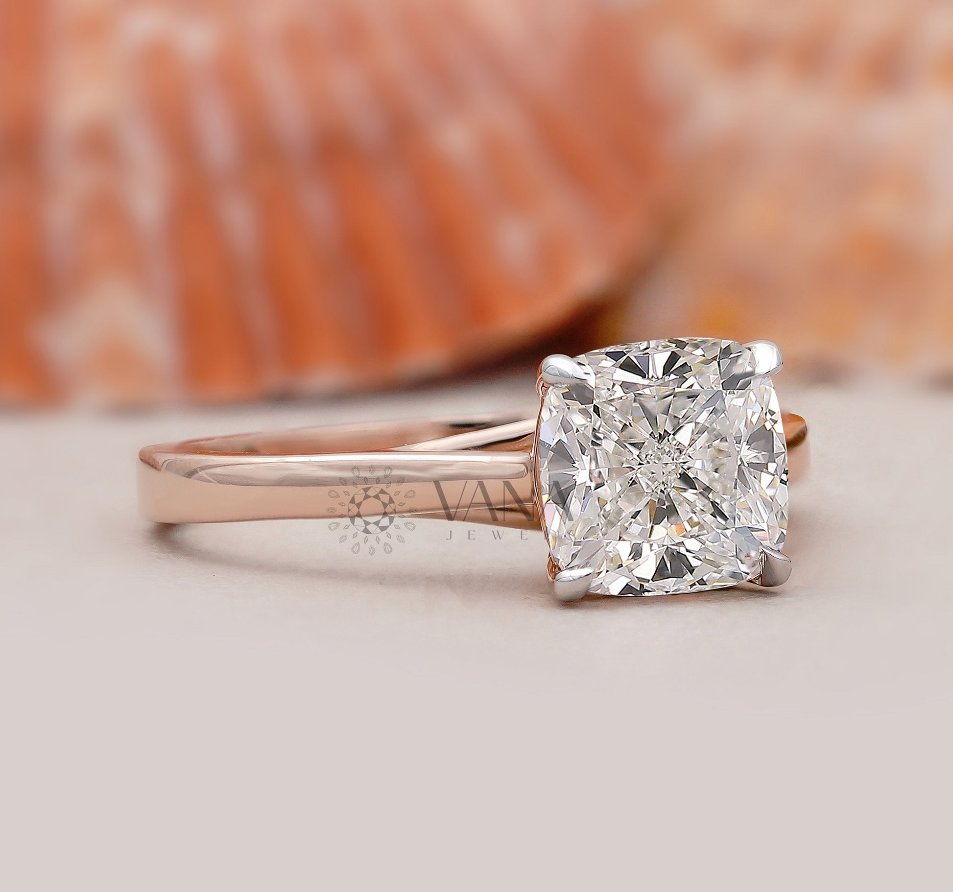 This elegant cushion cut lab grown diamond solitaire engagement ring is crafted in a classic cathedral setting that gracefully elevates the center stone for maximum brilliance and timeless beauty. Set in luxurious 14K rose gold, the softly rounded cushion diamond radiates exceptional fire while the sleek polished band offers comfort and everyday wear ability. Designed for modern brides who love clean sophistication, this ring blends ethical luxury with refined craftsmanship, making it the perfect proposal, anniversary, or wedding gift that symbolizes enduring love.