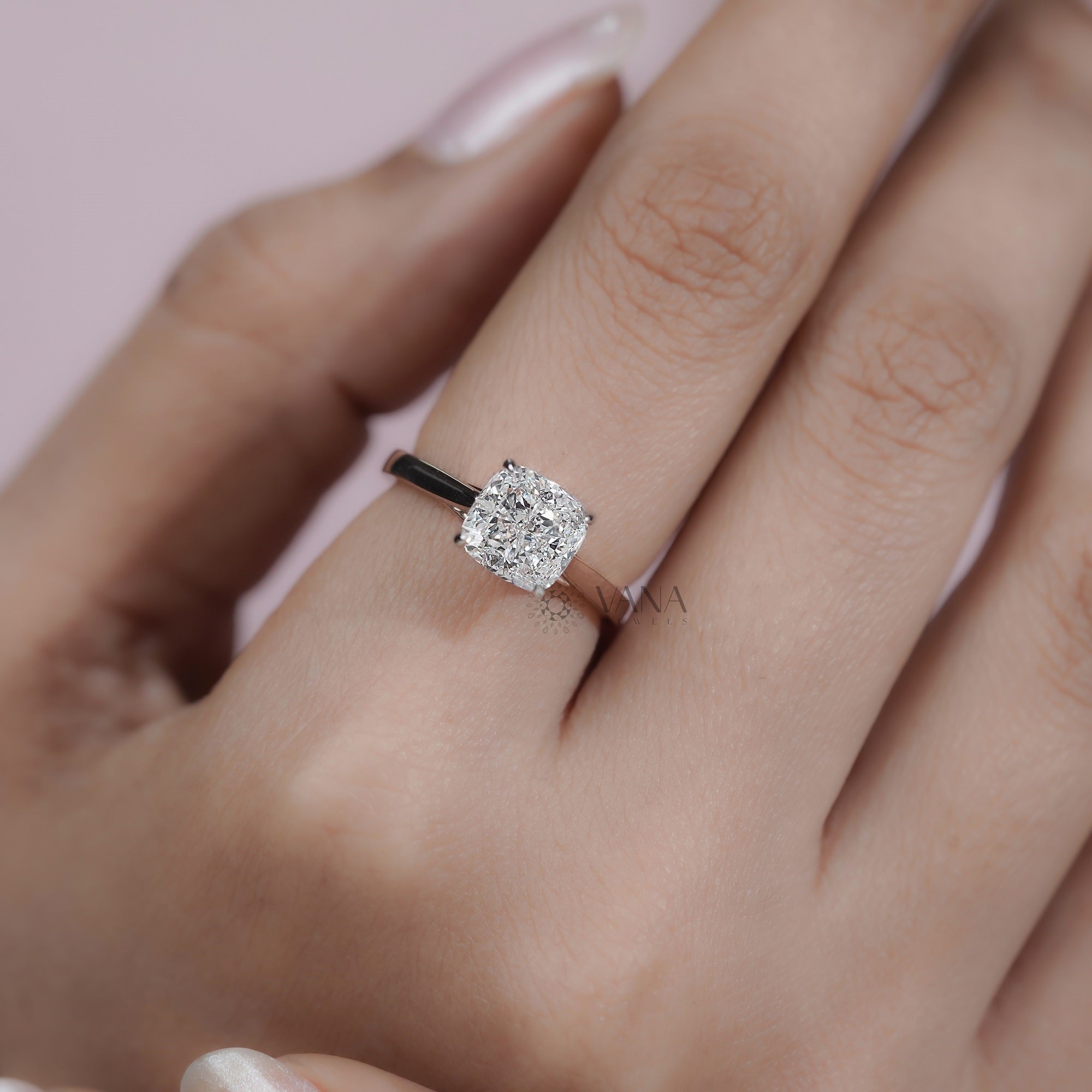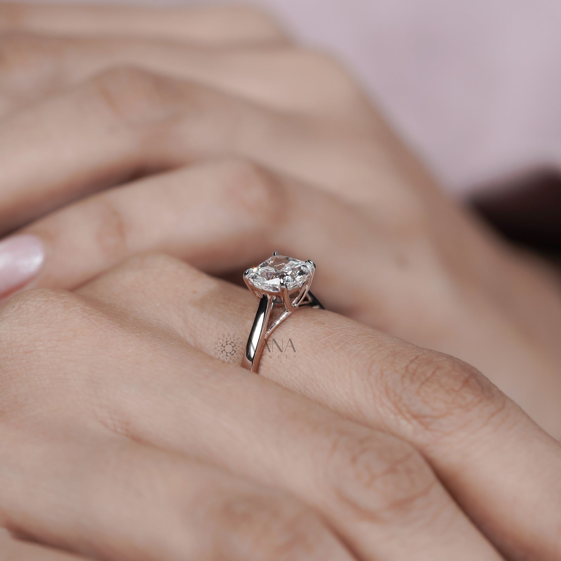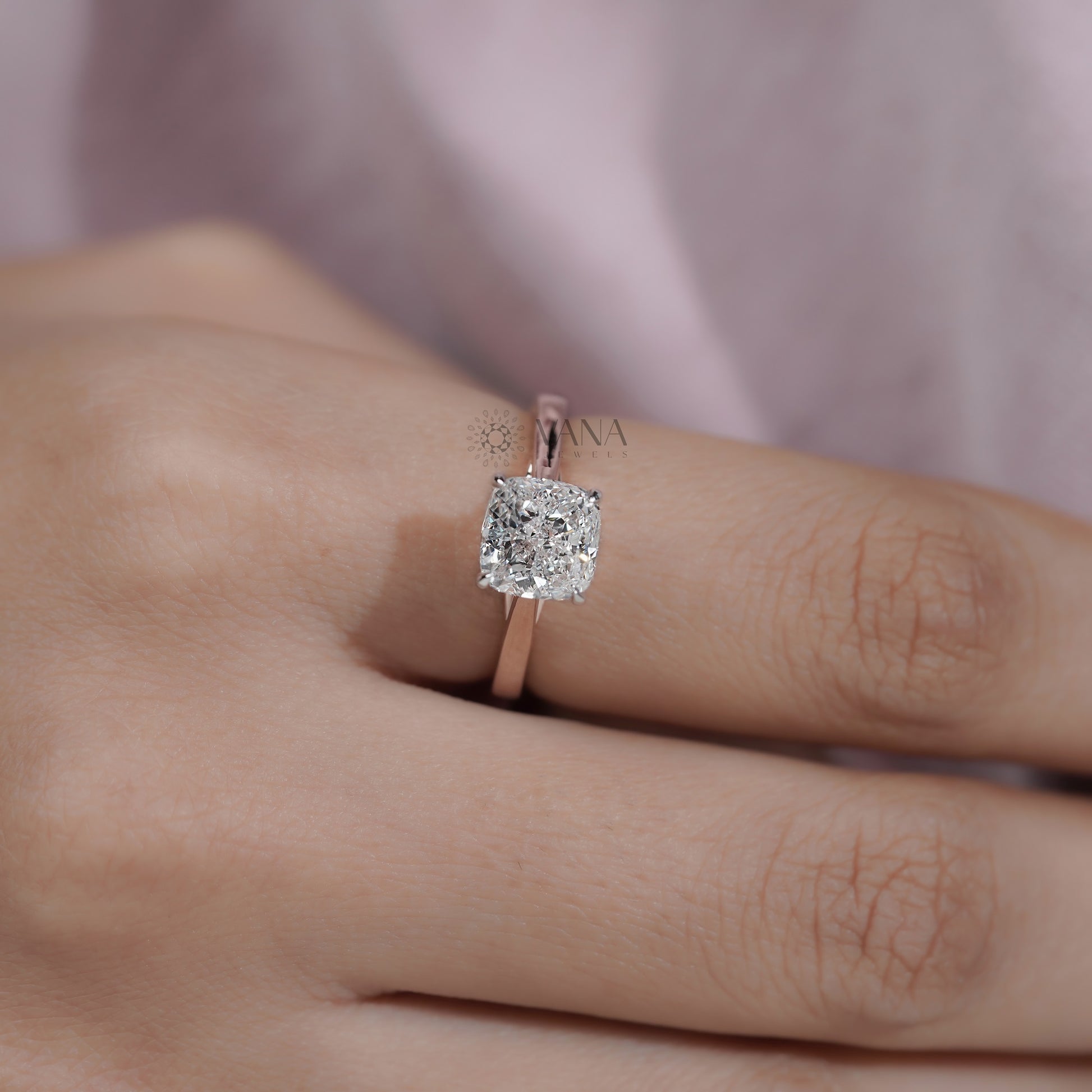 Cushion Cut Lab Grown Diamond Engagement Solitaire Ring in Cathedral Setting