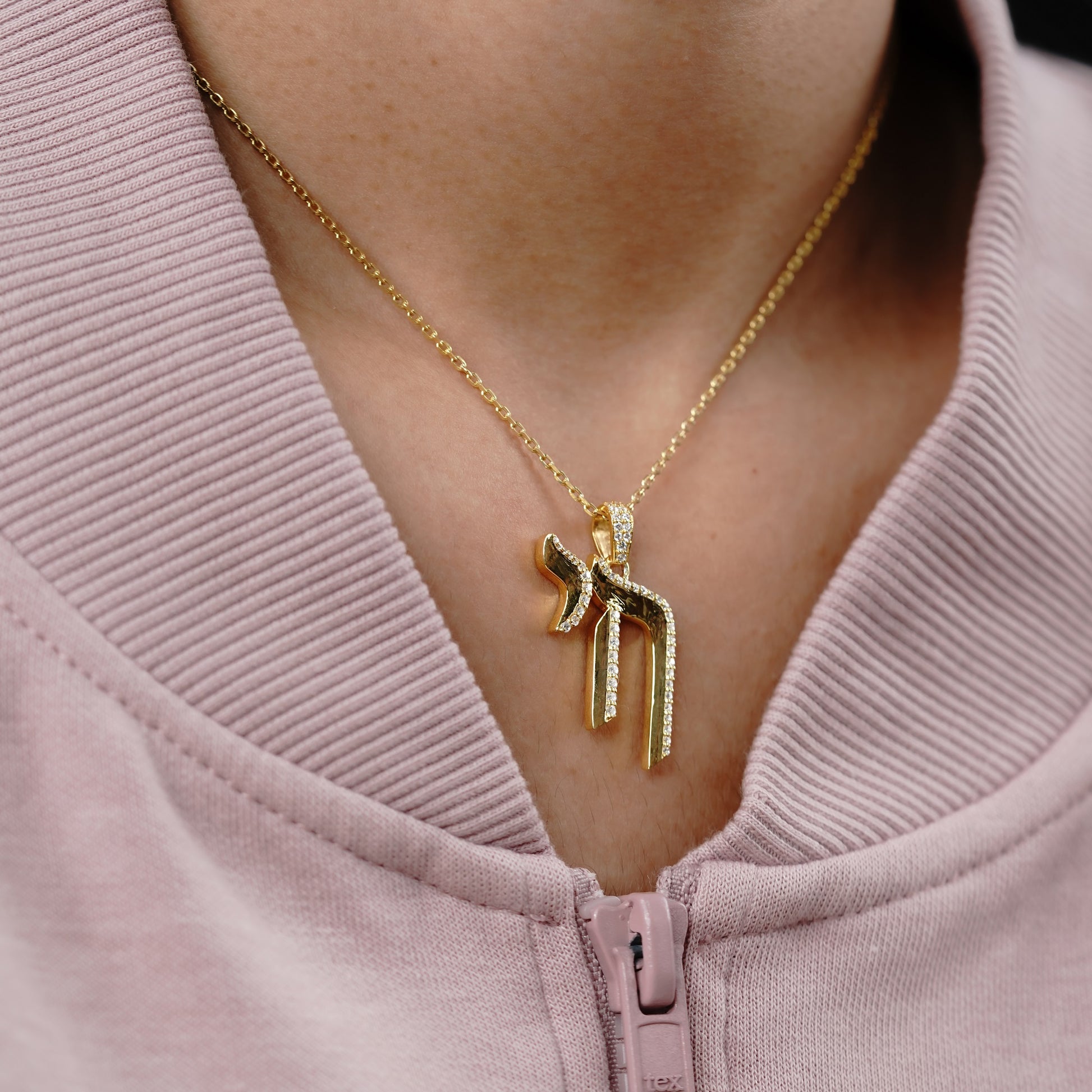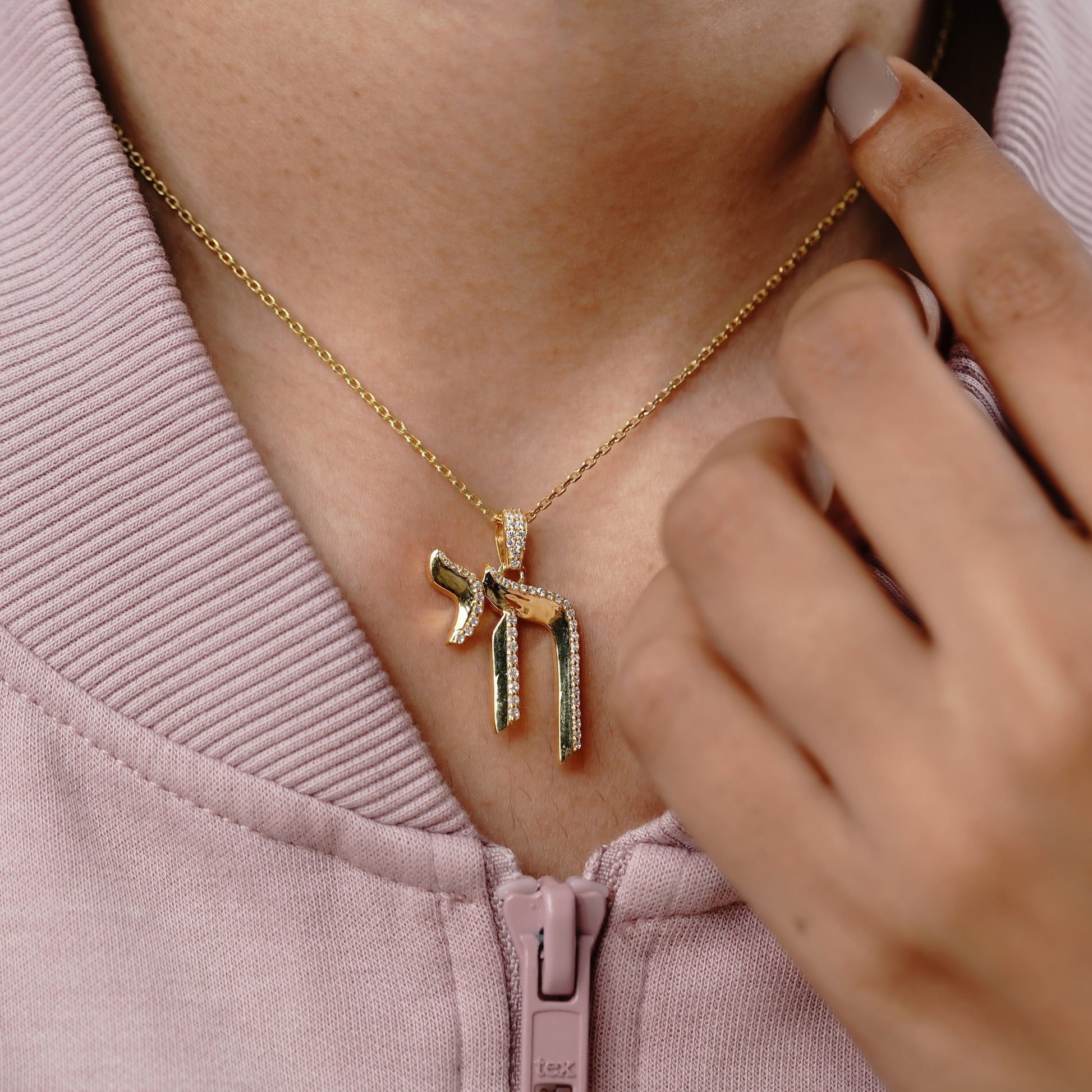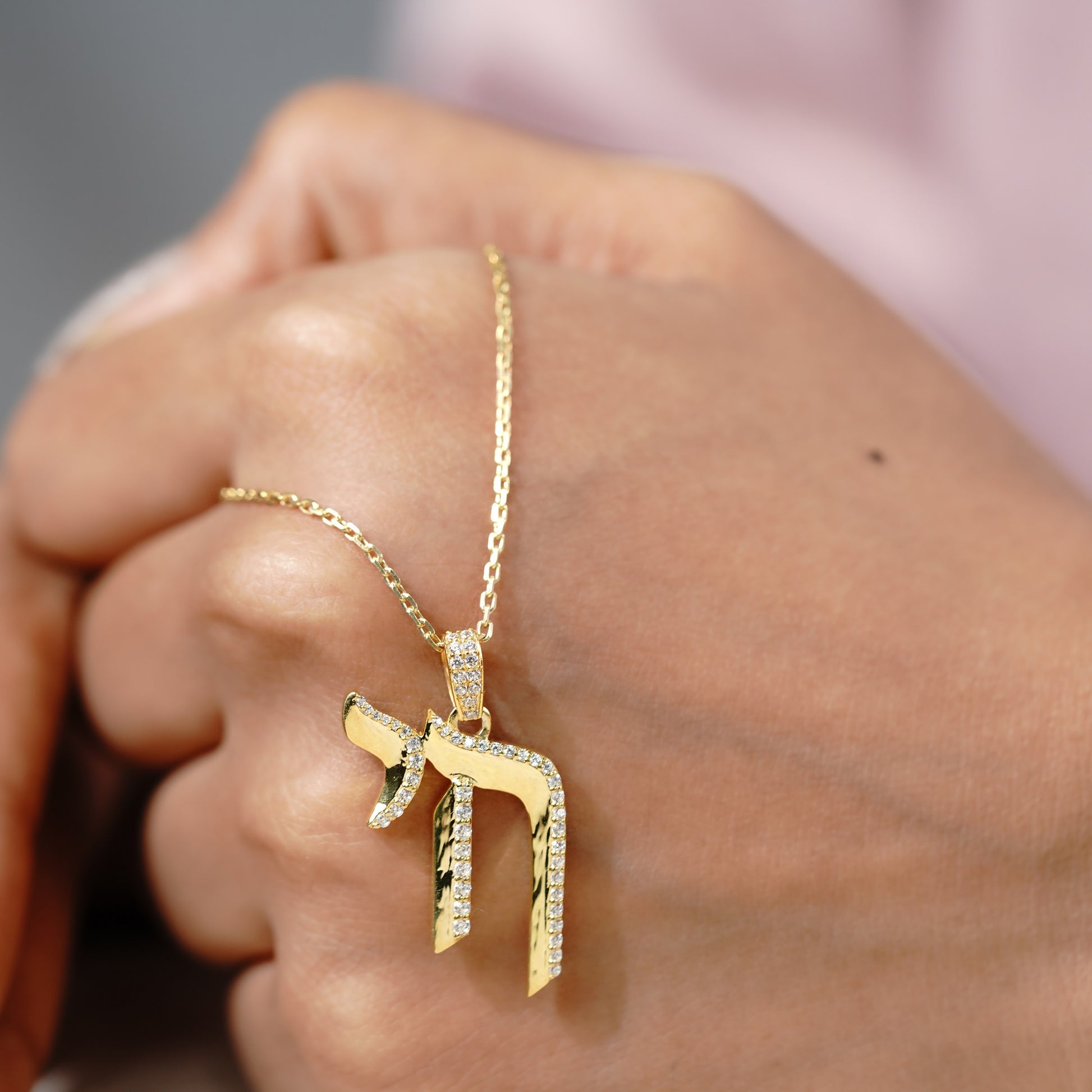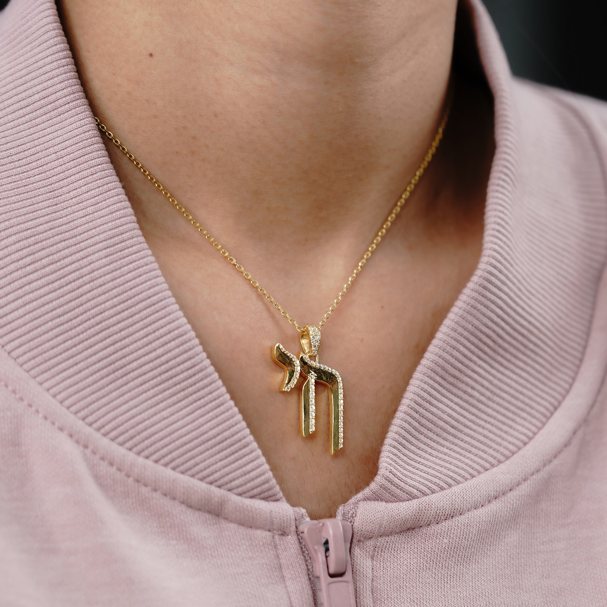 Jewish Chai Lab Grown Diamond Pendant with Round Cut Diamonds in Pave Setting