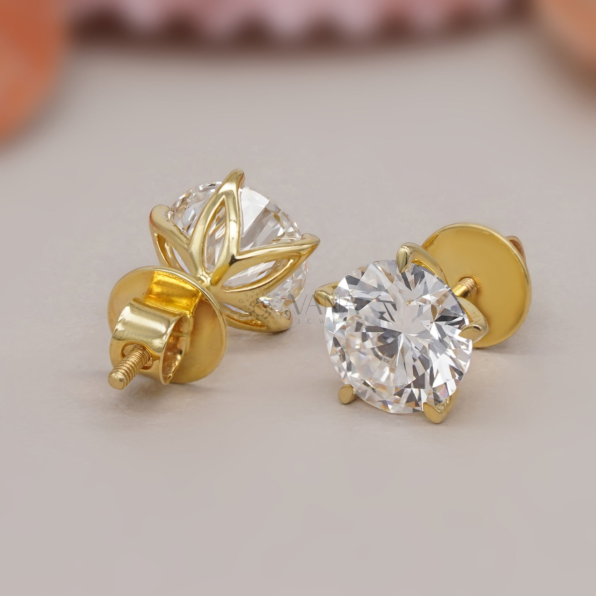 Round Cut Lab Grown Diamond Stud Earrings – Classic Minimalist Solitaire Gift for Her