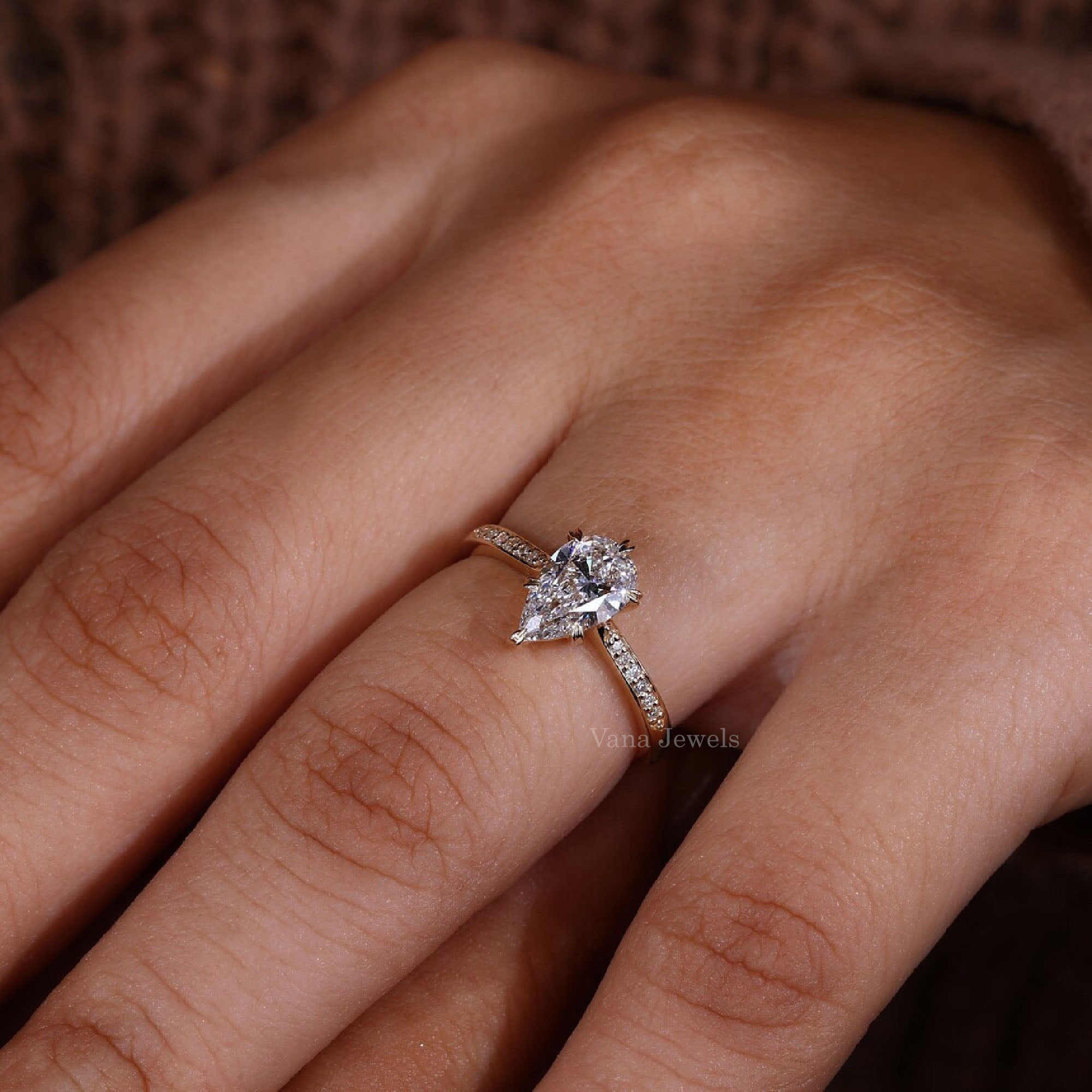 Pear Shaped Lab Grown Diamond Tapered Pave Set Engagement Ring