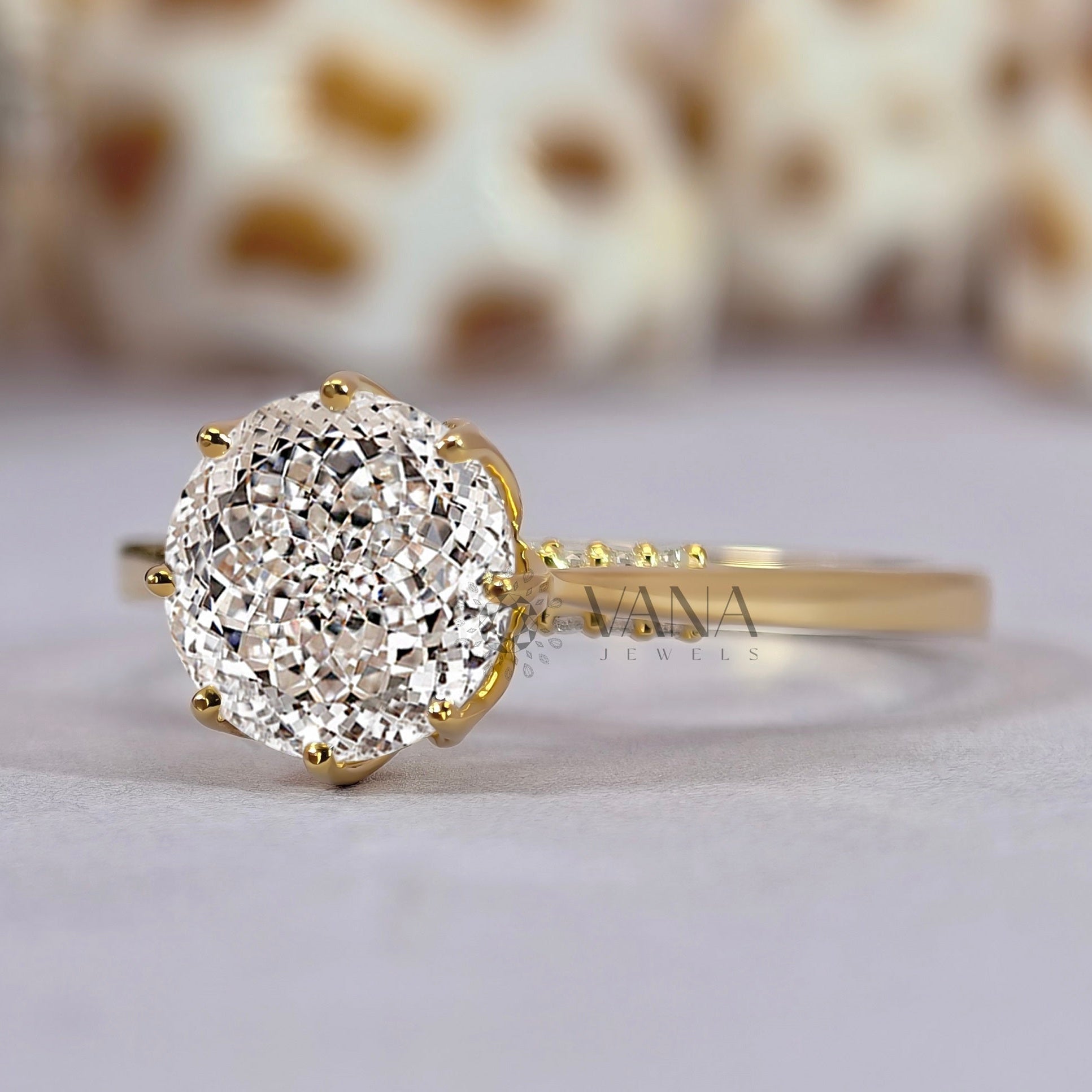 This antique-inspired engagement ring features a breathtaking Portuguese cut moissanite, admired for its intricate faceting and exceptional brilliance. Set in a timeless cathedral solitaire design, the elevated setting enhances sparkle while providing strength and elegance. Crafted with fine attention to detail, this ring blends vintage charm with modern craftsmanship. Perfect as an engagement ring, wedding ring, or anniversary gift, this unique moissanite ring symbolizes enduring love, sophistication, and individuality—an heirloom-worthy piece designed to be treasured forever.