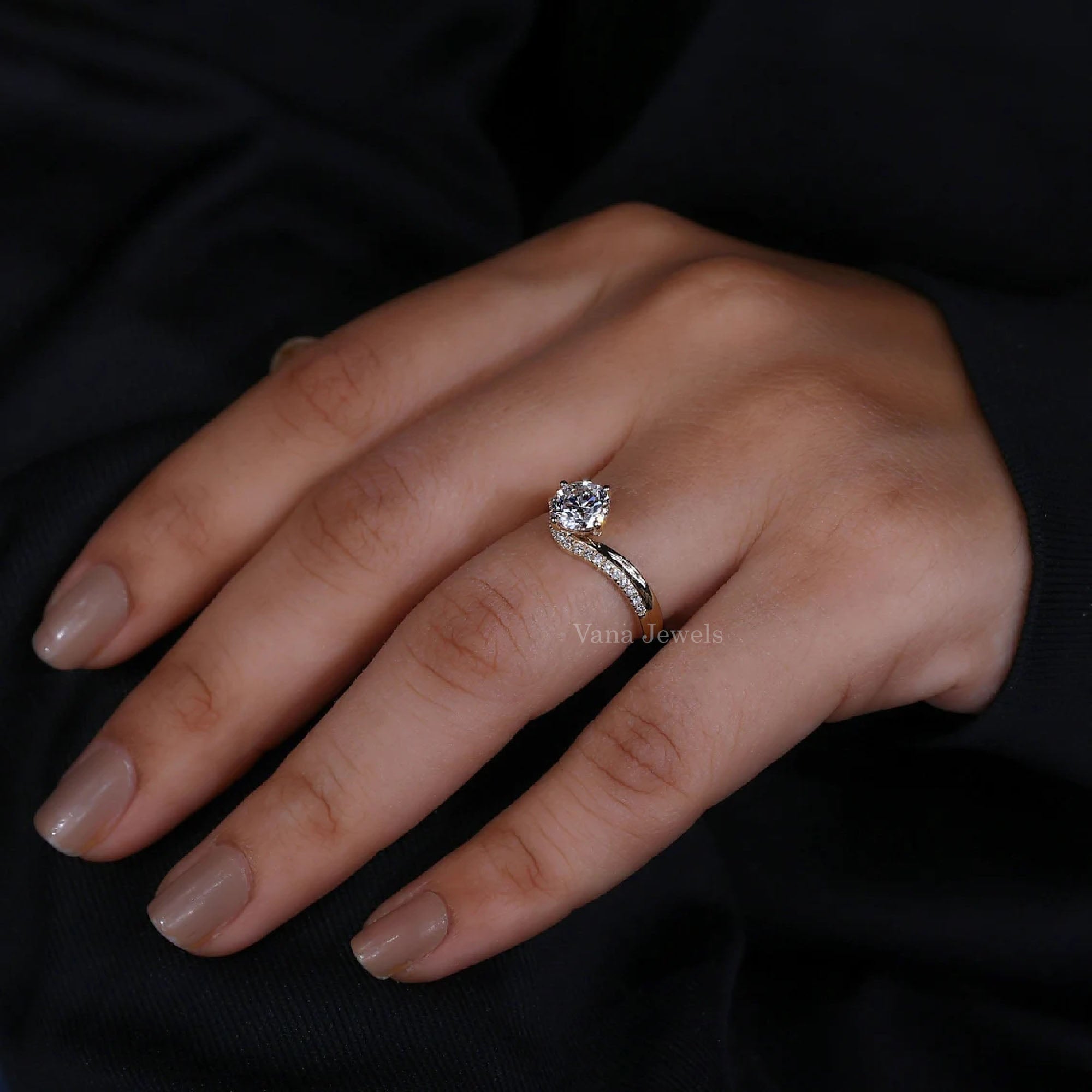 Round Cut Lab Grown Diamond Chevron Engagement Ring