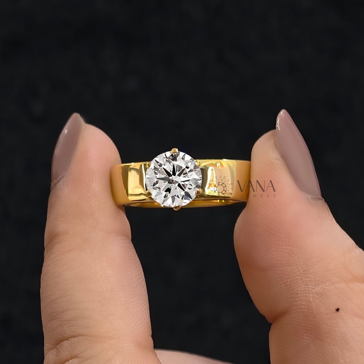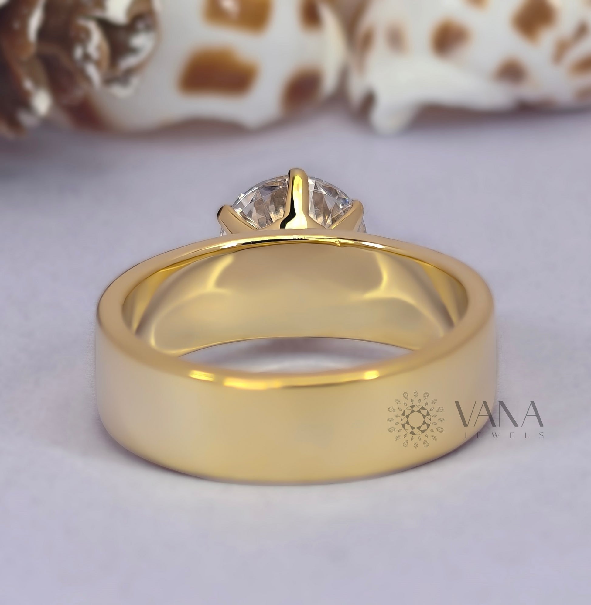 2.00 CT Round Cut Moissanite Wide Band Solitaire Engagement Ring in Yellow Gold