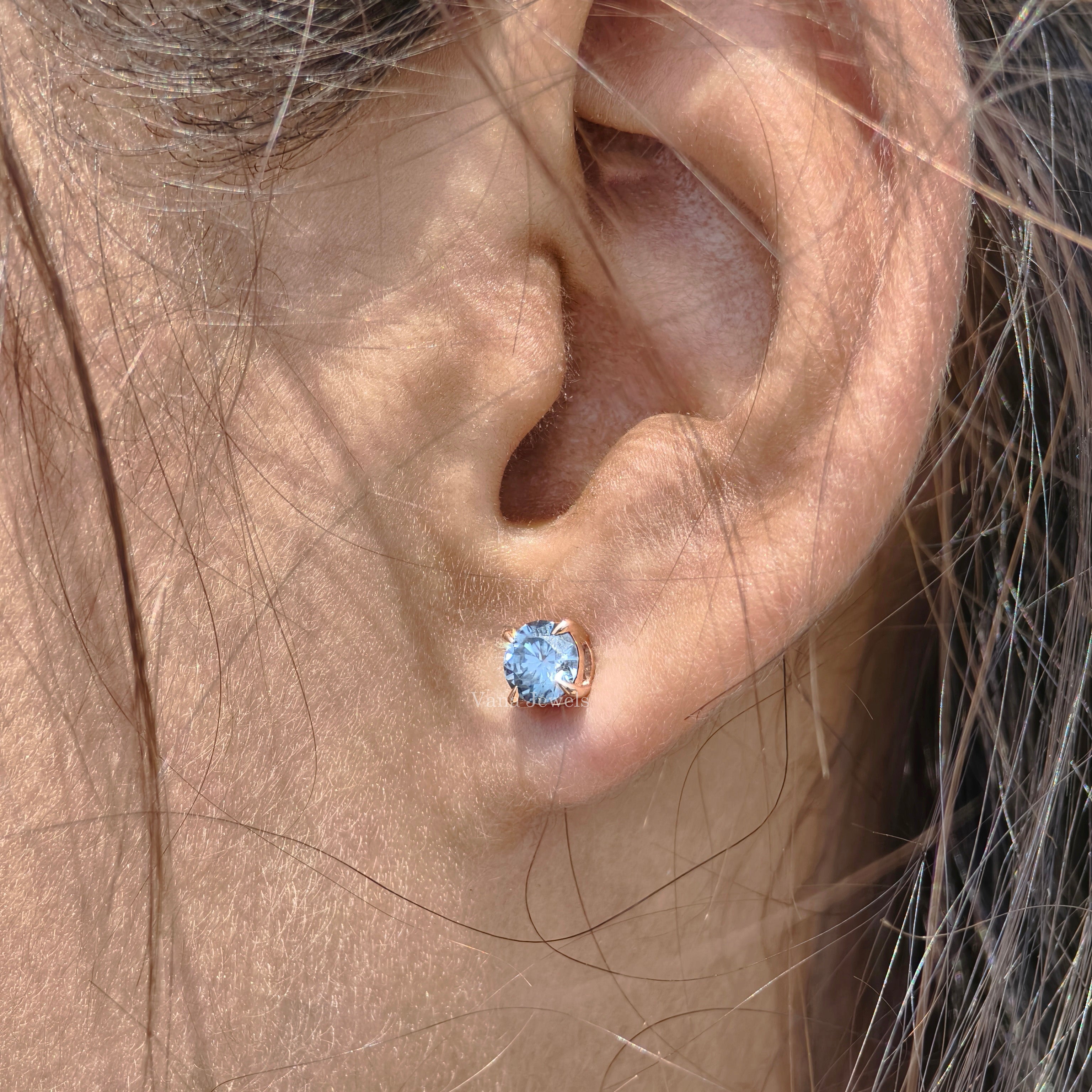 Round Royal Blue Moissanite Stud Earrings in Rose Gold with Screw Back Setting