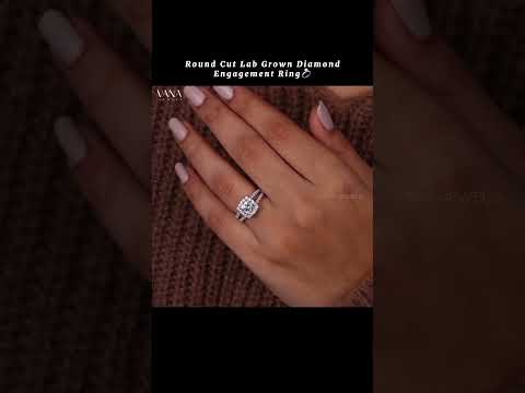This exquisite round halo engagement ring features a center lab grown round brilliant cut diamond, surrounded by the delicate charm of smaller round cut stones. The cushion outline halo adds a unique touch, enhancing the ring's overall allure. Additionally, the three-fourths pave setting of tiny round cut diamonds elegantly wraps around the shank, providing extra sparkle and sophistication.