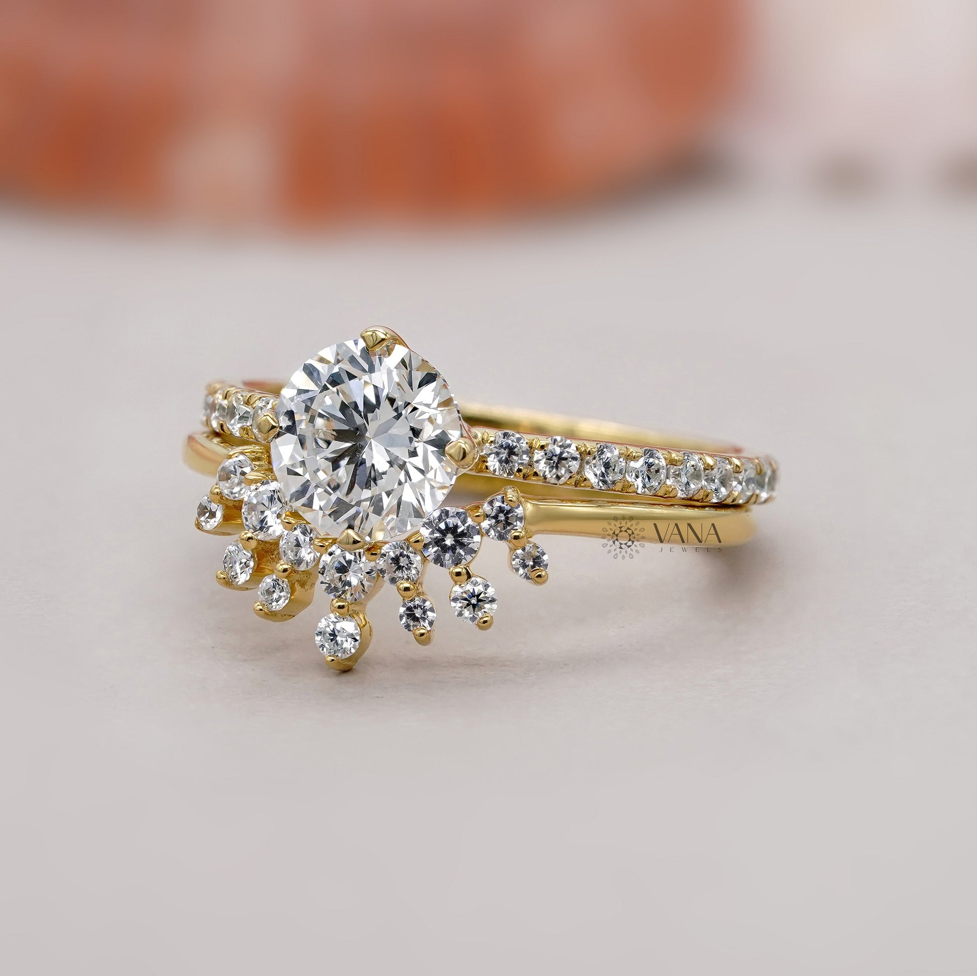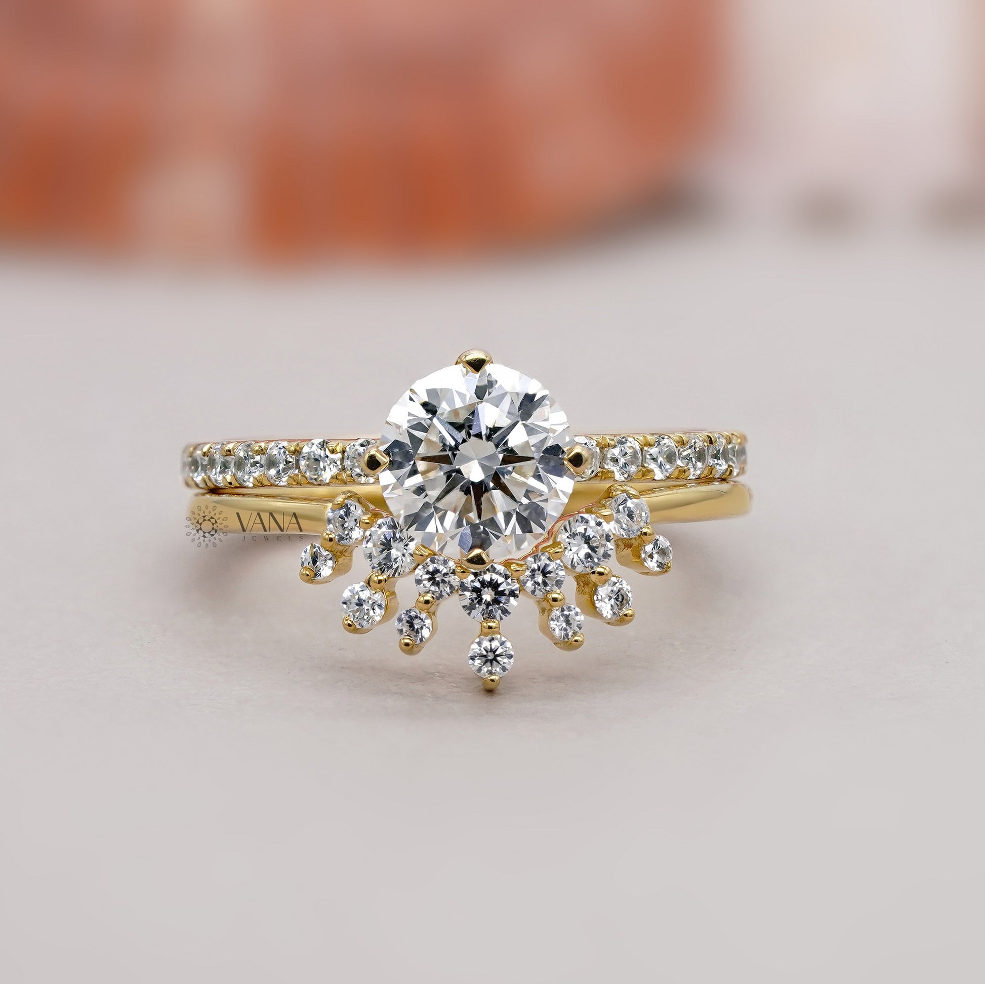 This stunning round cut diamond engagement ring is beautifully paired with a matching tiara-style wedding band, creating a regal and romantic bridal ring set. The brilliant round center diamond sparkles with exceptional fire, while the curved tiara band adds graceful detail and a crown-inspired finish. Crafted in fine metal with expert craftsmanship, this ring set offers elegance, comfort, and lasting beauty. Perfect for engagements, weddings, or anniversaries, this timeless diamond bridal set symbolizes love, commitment, and a fairytale beginning.