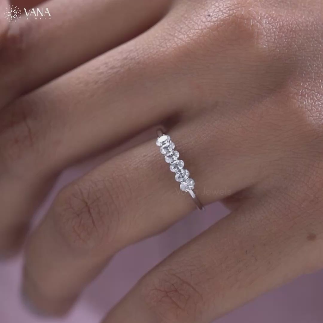 This beautiful band features six sparkling oval cut lab grown diamonds set in a row on a shiny white gold band. It's simple, elegant, and made to shine. perfect as a wedding band, anniversary gift, or stacking ring. The dainty and low profile design makes it easy to wear every day, either alone or with other rings. Made with ethical lab grown diamonds, this ring offers beauty and value. You can also customize it in different gold colors or sizes to match your style or gift needs.