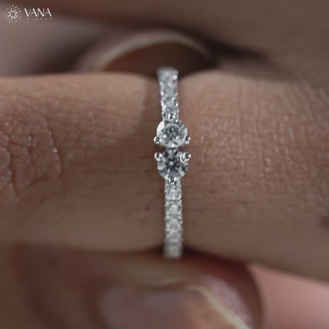 Two Stone Lab Grown Diamond Wedding Band, White Gold Toi et Moi Style Ring
